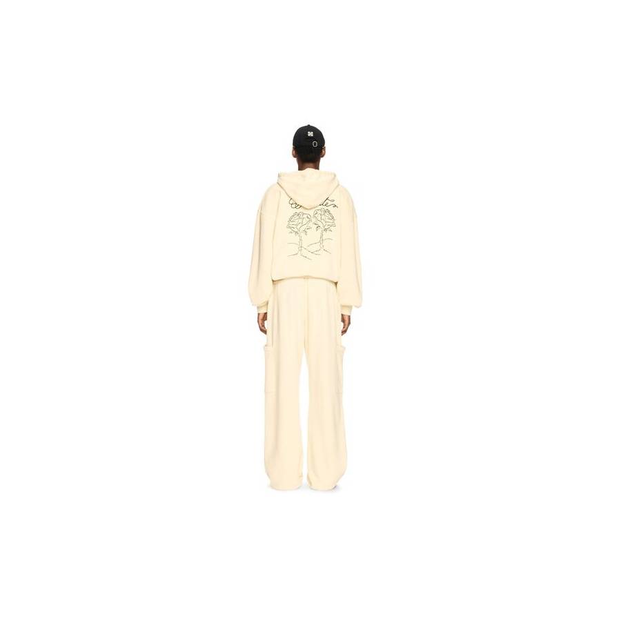 This 100% cotton hoodie features a small stamp logo on the front and large embroidered roses on the reverse with a script logo. Oversized fit.