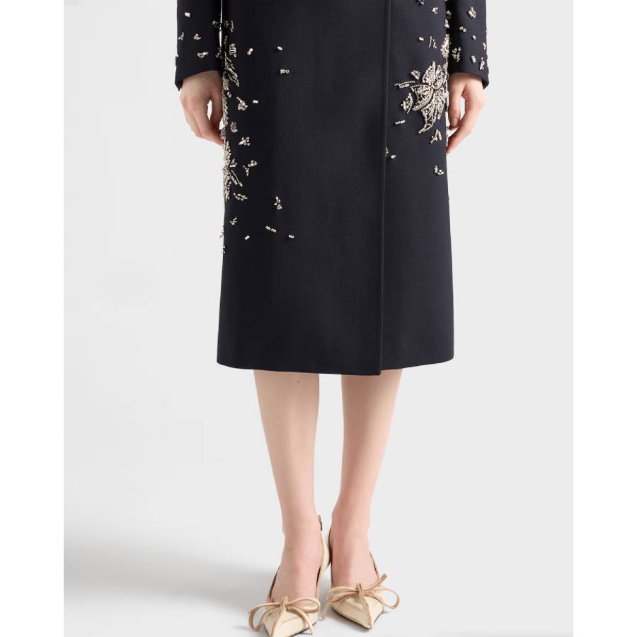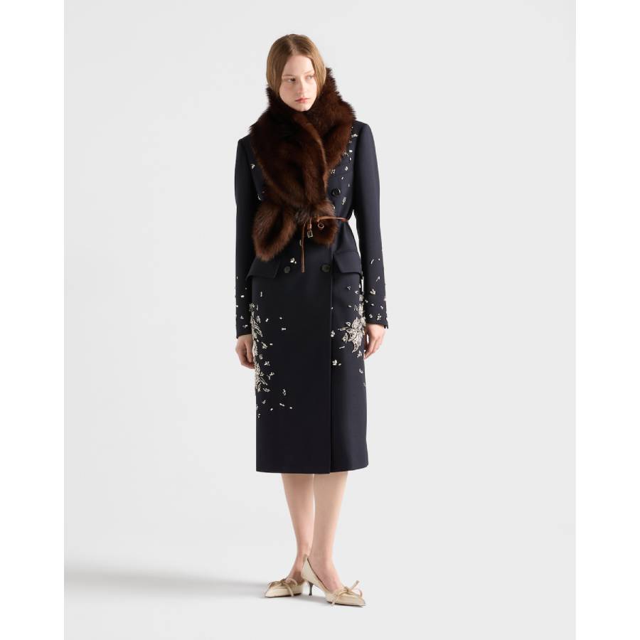 Embroidered double-breasted rush stitch wool coat