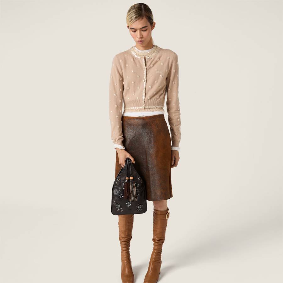 Embroidered nappa leather handbag