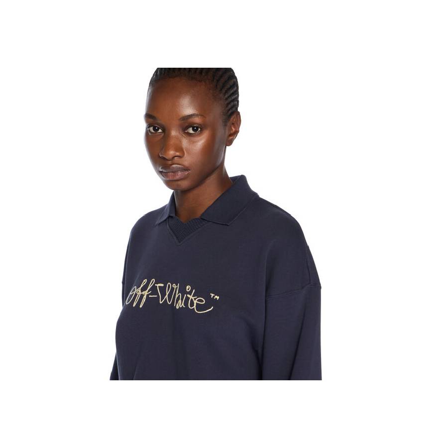The Emb Script Logo Crop Polo Sweater by Off-White™ offers a refined take on streetwear, blending urban aesthetics with a minimalist silhouette.