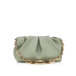 The Eva shoulder bag in size small reflects sophistication with its sleek folds. Crafted from lamb nappa leather in Haiiro green, a gold charm evocative of the iconic Louboutin sole adds an eye-catching detail. This sophisticated Maison Christian Louboutin model can be carried by hand or over the shoulder using the gold chain. This cute and highly fashionable bag is perfect for the evening. The nappa leather, with its semi mat look and slightly visible natural grain, exudes quality and offers a timeless and sophisticated look.
