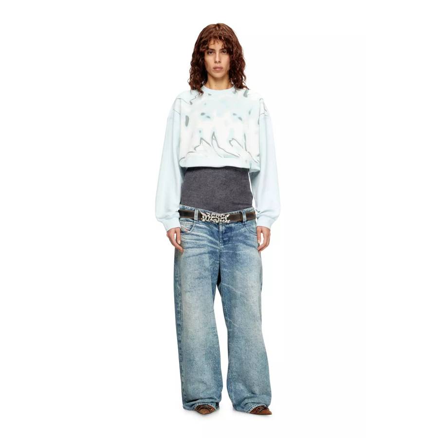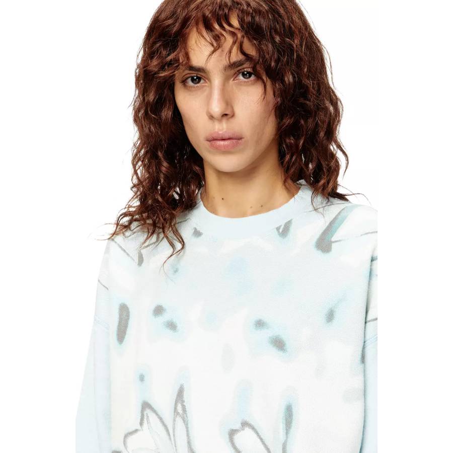 The muted print on this women’s FW25 Runway style is a wearable ode to the inflatable graffiti installation that housed the latest Diesel Fashion Show. Toughened up with subtle distressing, the jersey is made organic cotton and recycled polyester.