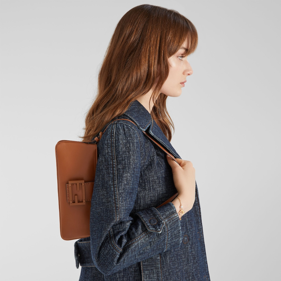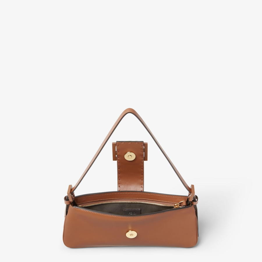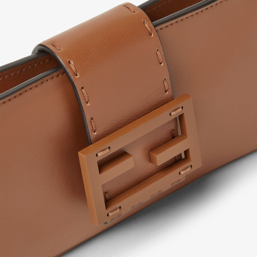 Made of tan calfskin decorated with a tone-on-tone leather FF clasp and finished with hand-sewn tone-on-tone macro topstitches, an emblem of the iconic Selleria workmanship handed down through generations of Fendi artisans since 1925.