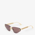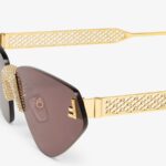 Fendi First cat-eye, rimless glasses, part of the collection curated with designer Stefano Pilati. Thick metal bridge embellished with hand-set crystals. Grey lenses with crystal F motif. Metal temples with perforated texture embellished with crystals. Adjustable nose pads.