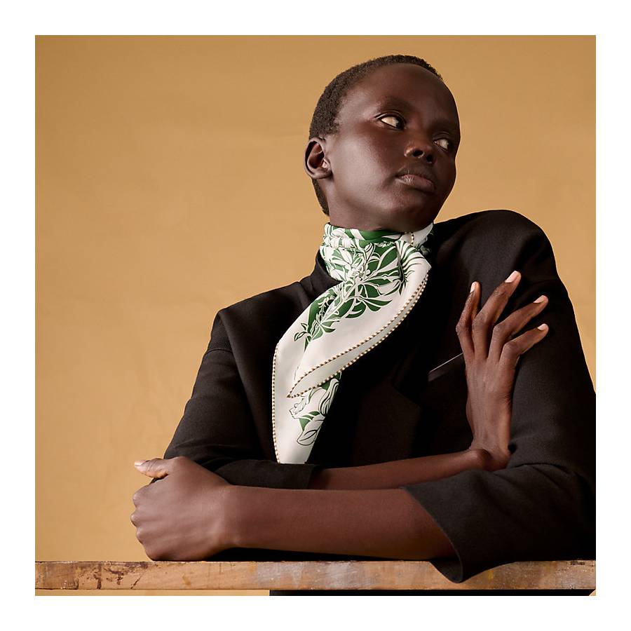 Discover the duality and uniqueness of this double face scarf. Through an innovative printing technique, both sides of the scarf feature captivating designs, creating a remarkable statement of beauty in double!