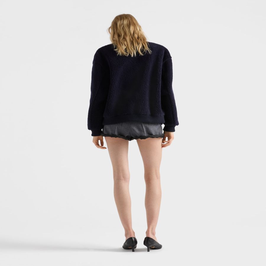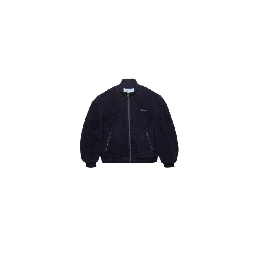 Warmth and lightness are reinterpreted with Prada style. Clean lines, ribbed knit cuffs and discreet logo transform this jacket into an iconic garment.