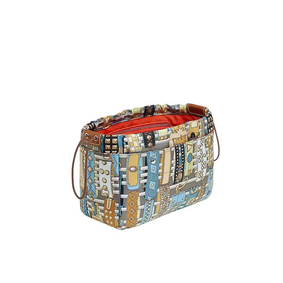 Handbag pouch in “Colliers de chiens” printed silk with Barenia calfskin details