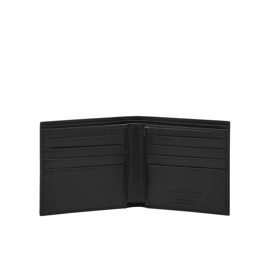 Tumbled leather credit card wallet with the brand lettering print on the front. Inner slots and compartments. Fully lined. Measure: h. 10 cm, w. 11 cm (folded).