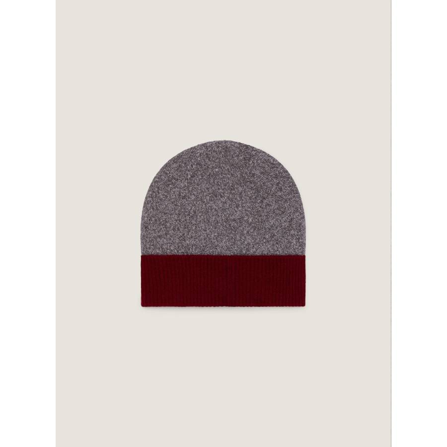 - Bicolor beanie in heathered cashmere.