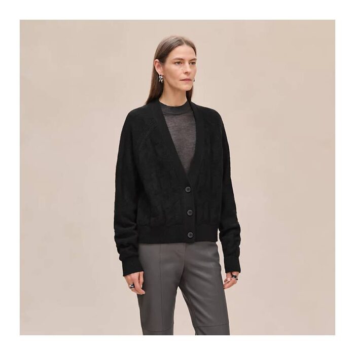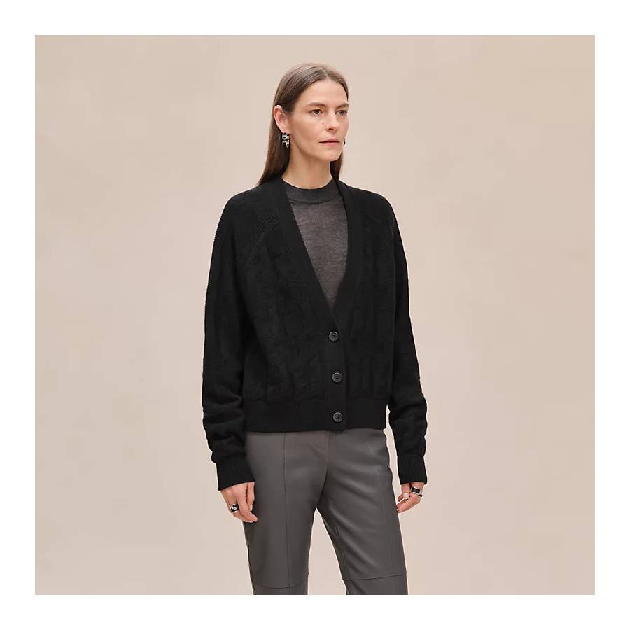 Cardigan in plain wool knit with “H” motif (100% virgin wool)