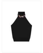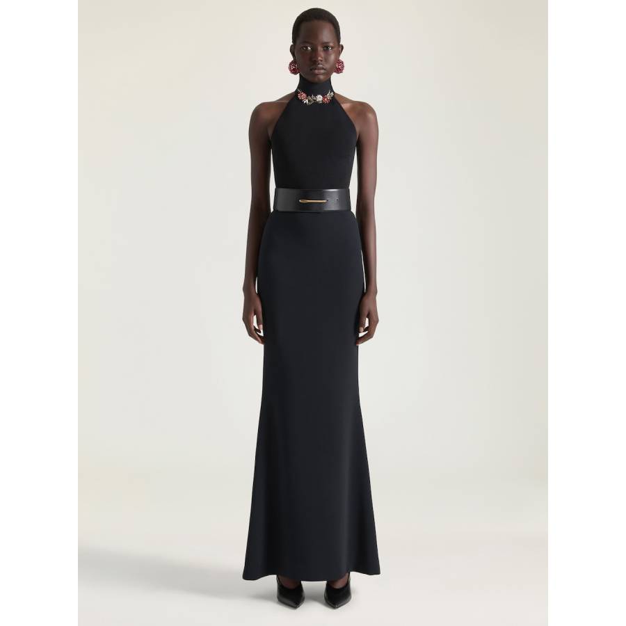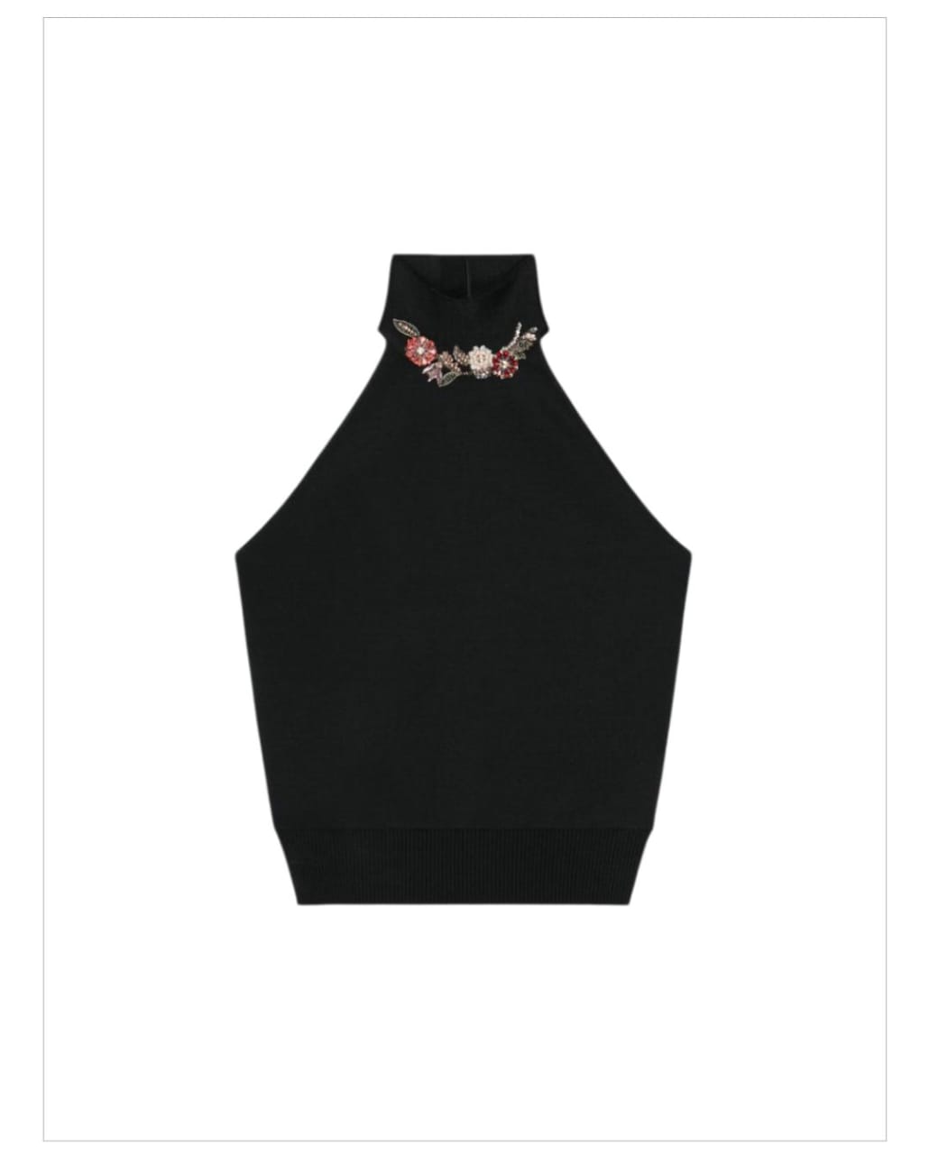 - Halter neck with embroidered flowers in crystals.