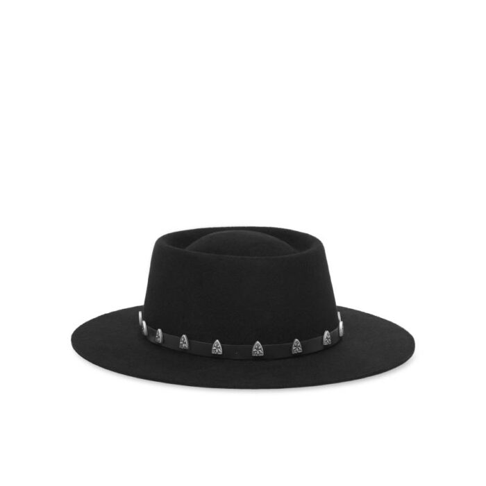 The wide-brimmed pork pie hat defines your personality at first glance. Check out Philipp Plein’s version for the season.
