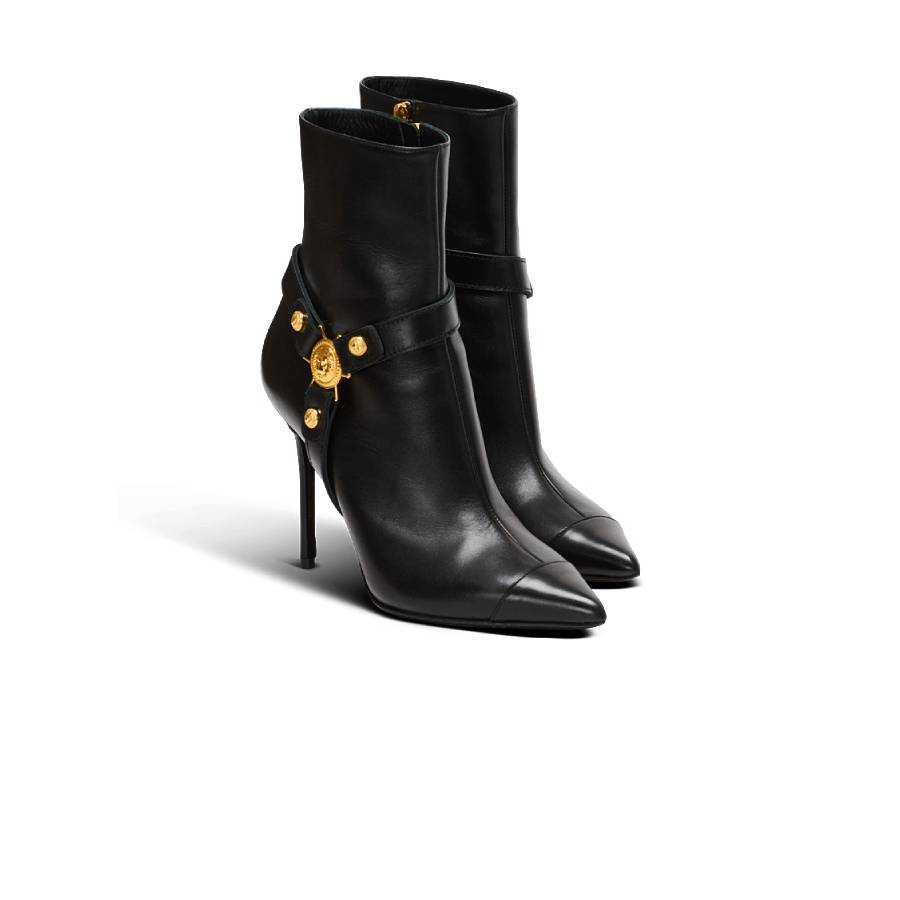 - Decorative leather straps with “Signature Lion Coin” hardware