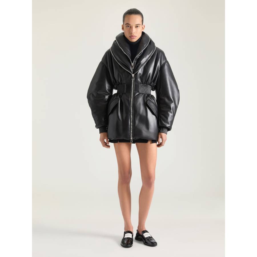 Home Women Clothes Coats & Jackets Hourglass bomber with zipped shawl collar in leather