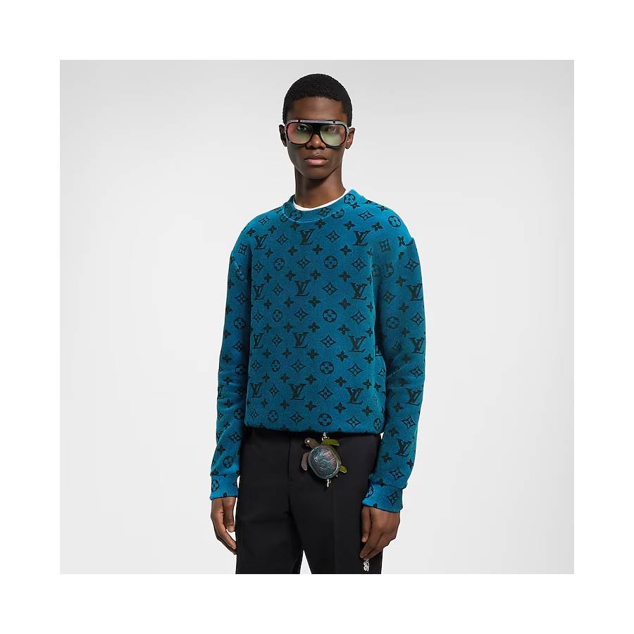 This striking sweatshirt showcases Louis Vuitton savoir-faire with an eye-catching iridescent knit. Crafted from a cotton blend, it is adorned with an allover Monogram motif with a gradient effect, with shifting and changing vibrant blue and black tones. A light layer for spring, this sophisticated piece brings a standout signature twist to casual looks.