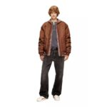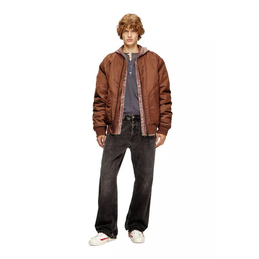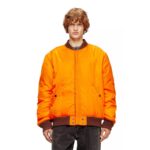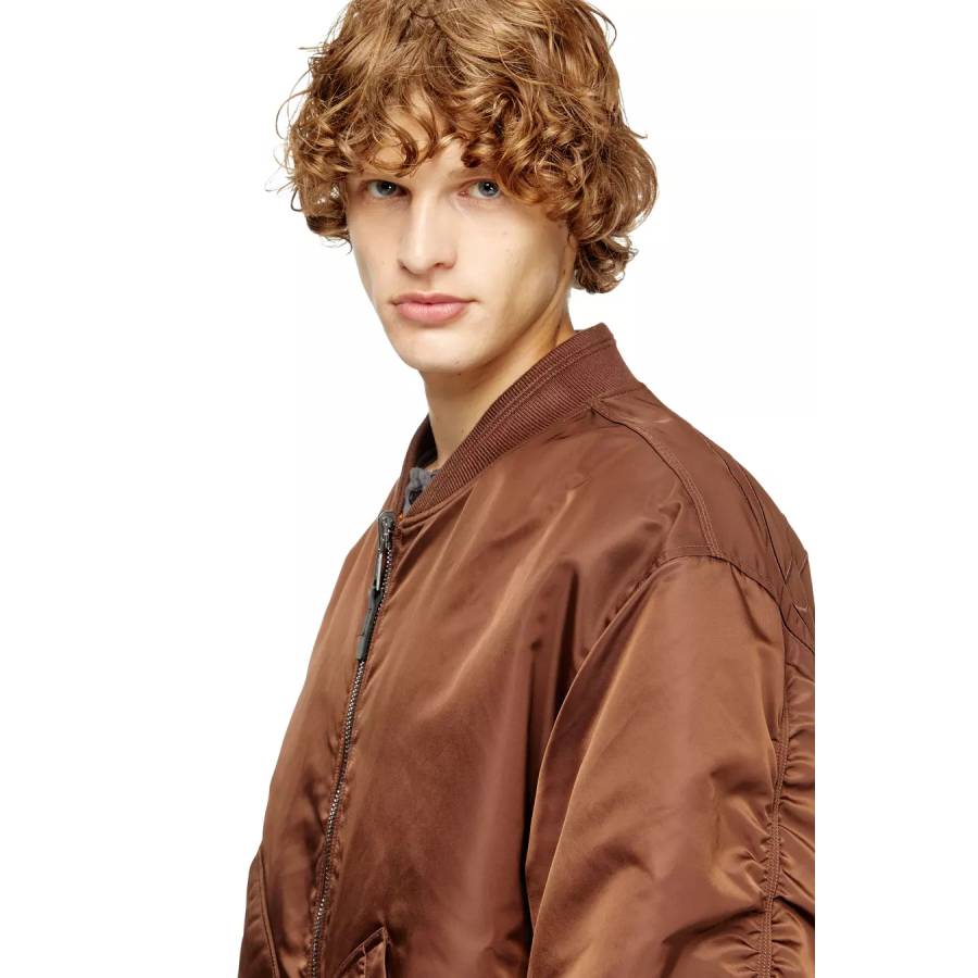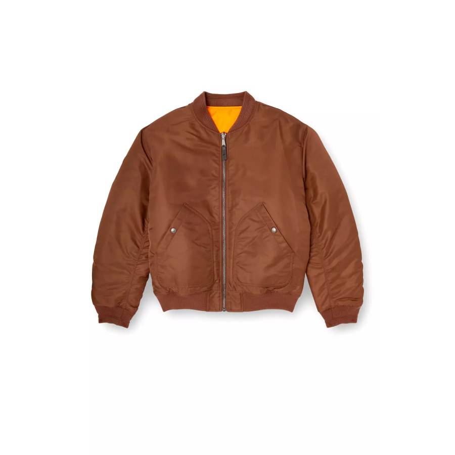 Mens nylon bomber jacket, cut from certified recycled nylon. Its lightly padded for warmth, and detailed with a tonal Oval D outline embroidered on the back and slightly ruched seams along the sleeves.