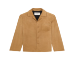 long-sleeve buttoned jacket, featuring a shark collar and chest pocket.