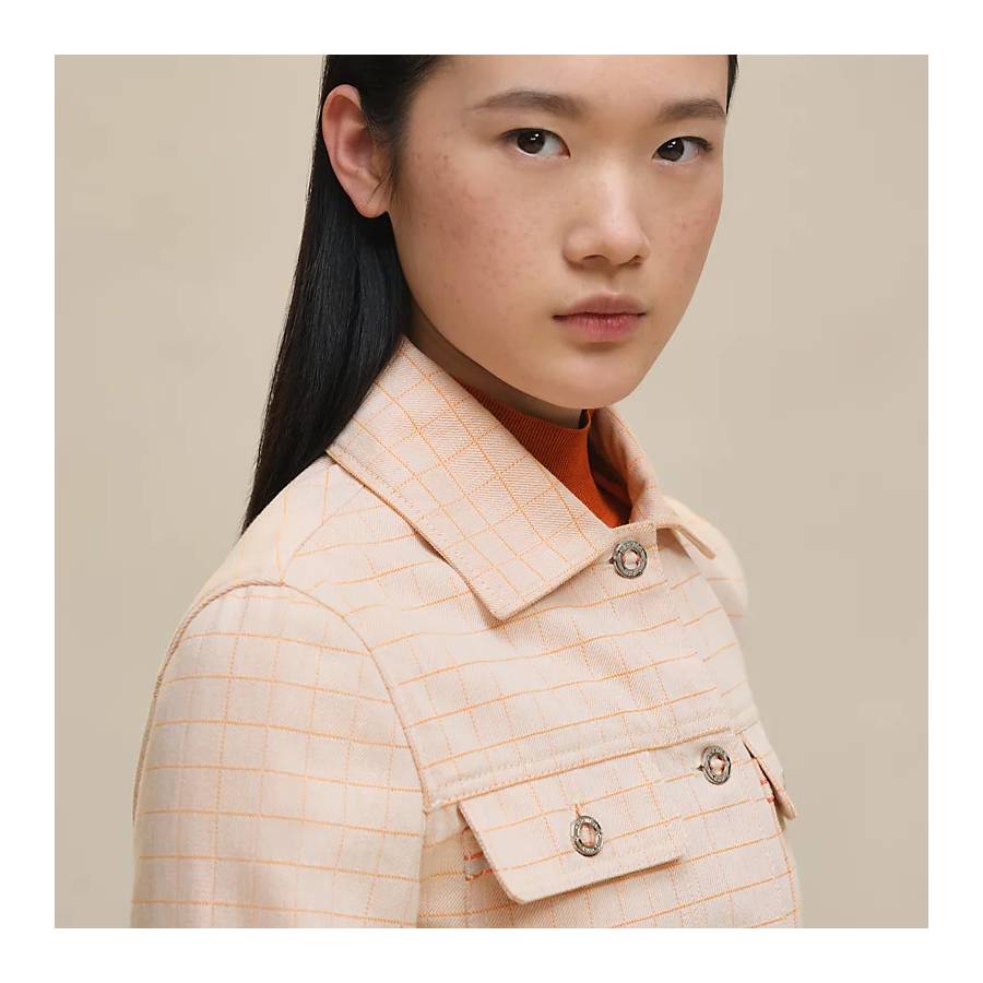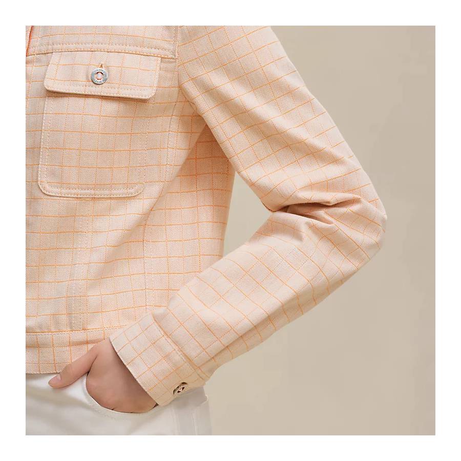 – Front flap pockets and cuffs slits with Clou de Selle engraved palladium-plated Canadian buttons and bicolor ribbon