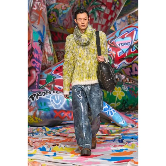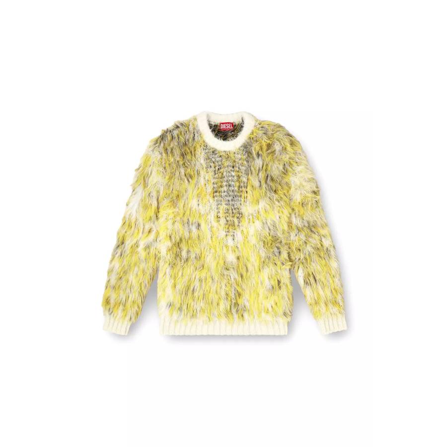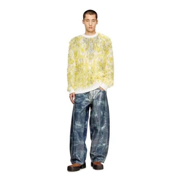 Part of the Fall Winter 2025 Runway Show collection, this men’s sweater is an ultra-fluffy multicolour jacquard knit cut with fearless jolts of acid yellow. Designed for a regular fit.