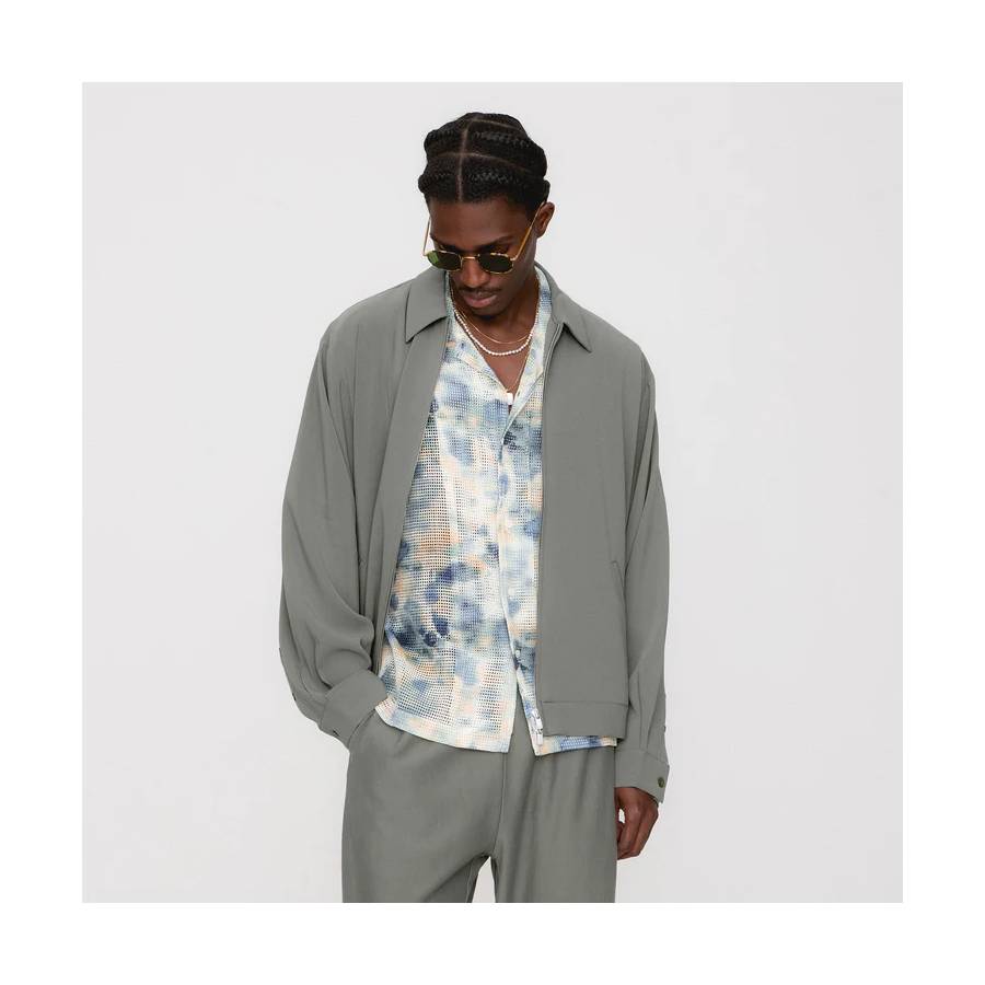 The Connor Blouson Jacket is crafted of double crepe fabric, featuring a two-way zip-front closure, button closures at the sleeves, and double-welt hand pockets.