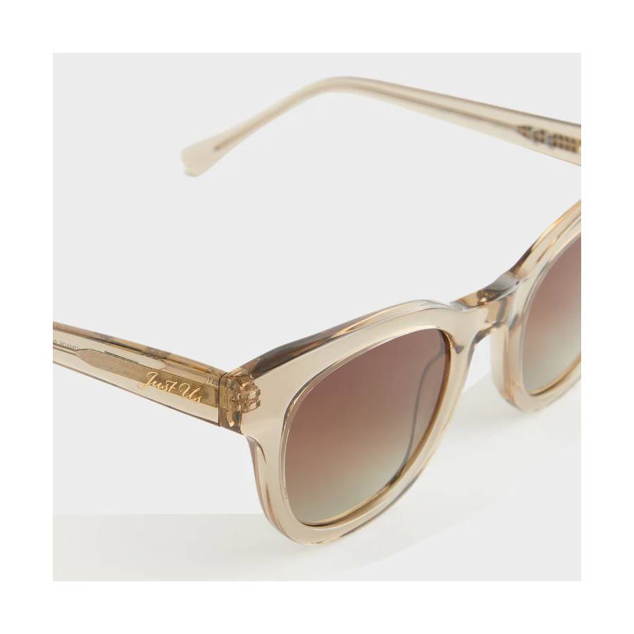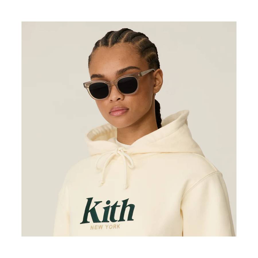 Kith logo and “Just Us” inlaid metallic printing on outer temple hinge area