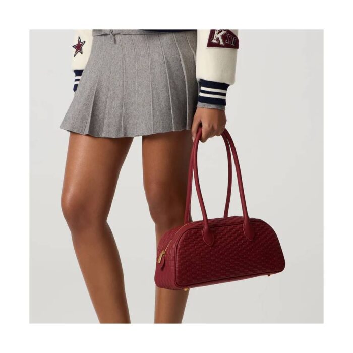 The Beatrix is made of Kith Monogram deboss Saffiano leather, featuring a cotton canvas lining, structured handles, a zip-top closure, and a zippered interior pocket. It is complete with metal feet that spell out KITH on the bottom, Kith hardware, and Kith foil deboss at the interior.