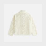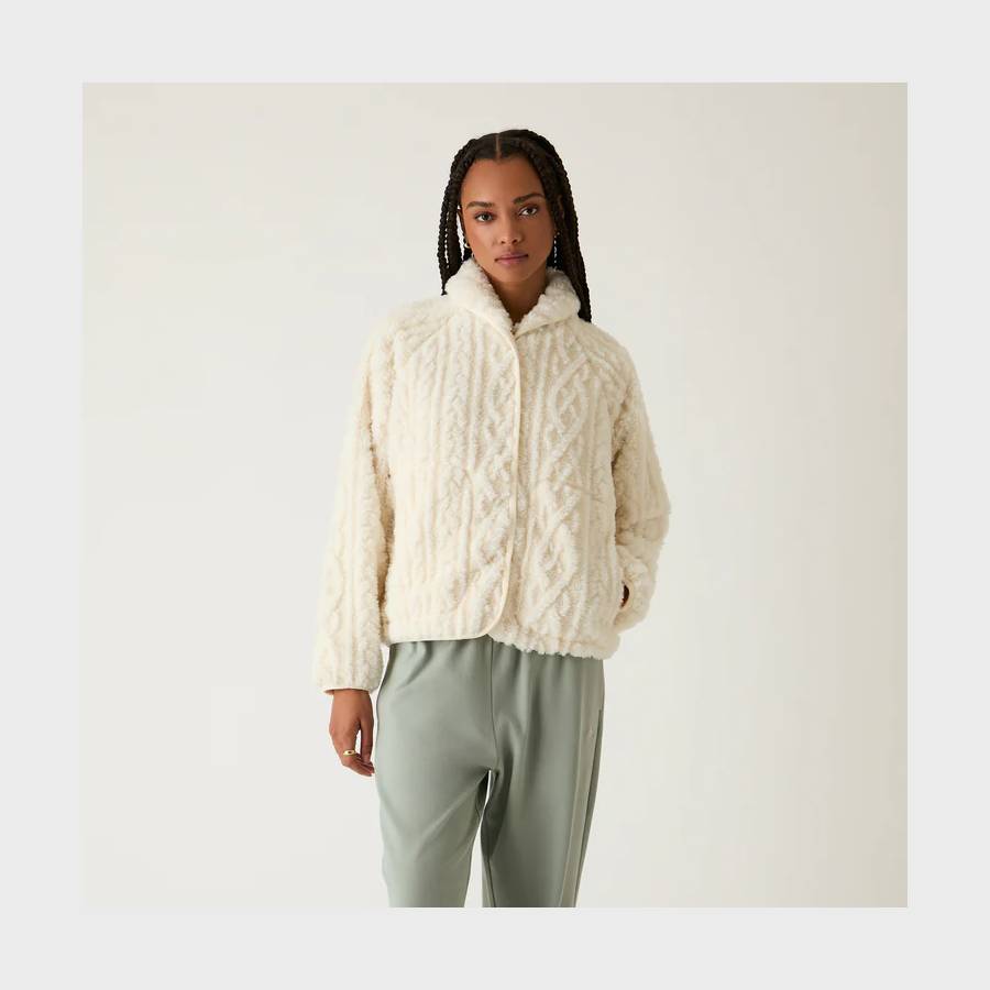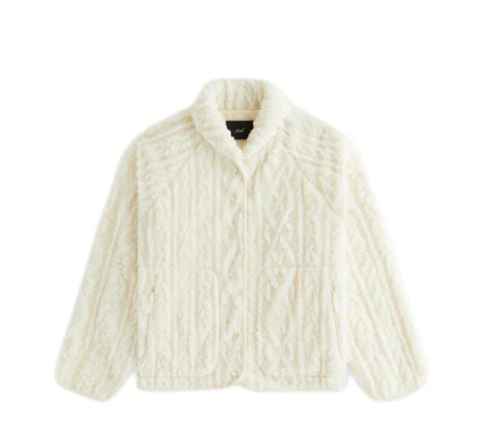 Elastic binding at neckline, front, sleeve cuffs, and hem
