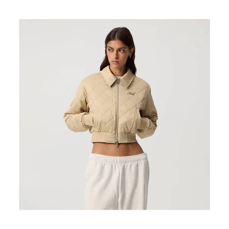 The Landry IV Cropped Satin Bomber is designed to be fully reversible, featuring a solid satin exterior, and a quilted satin lining. It is complete with ribbed trim at the sleeve cuffs and neckline, a zip-front closure with Kith hardware, and welt pockets, along with Kith embroidery on the chest.