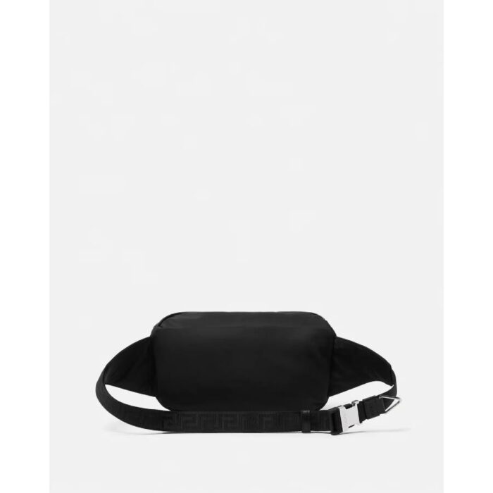 A nylon belt bag featuring the iconic La Medusa hardware and an adjustable jacquard Greca strap.This functional accessory can be worn slung over one shoulder.It’s detailed with a V-ring hardware, perfect for personalizing with Versace keychains and charms.