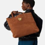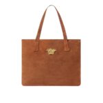 This tote bag is crafted entirely in suede and features a central three-dimensional La Medusa hardware.