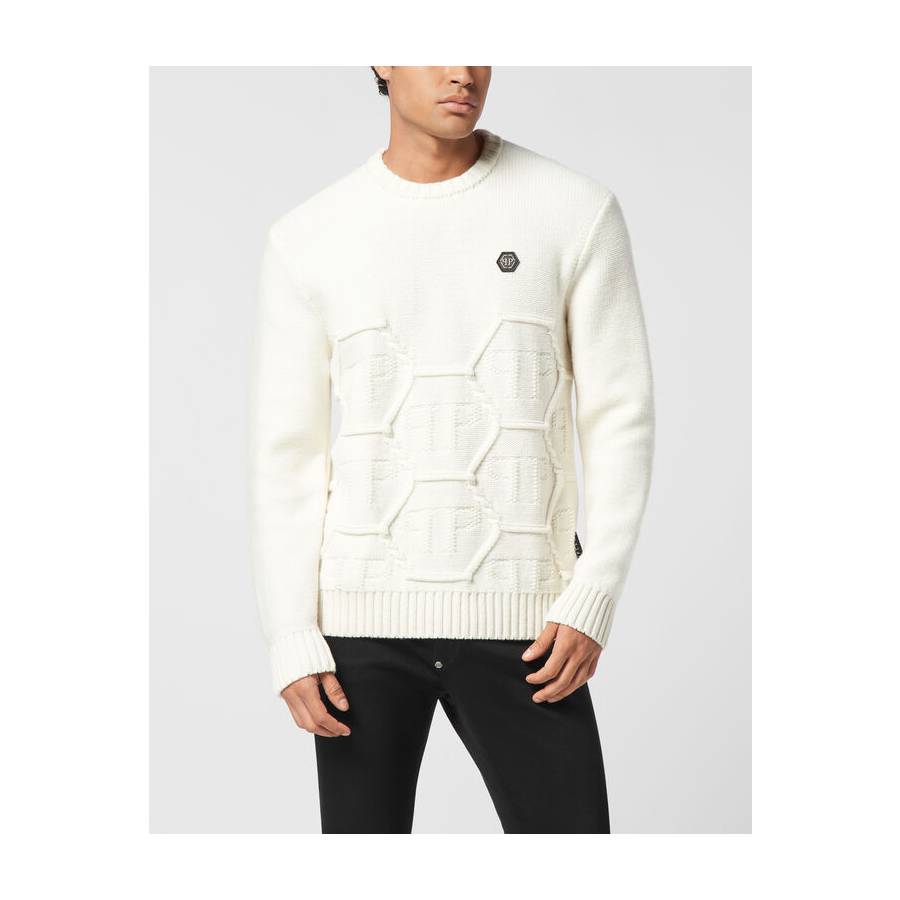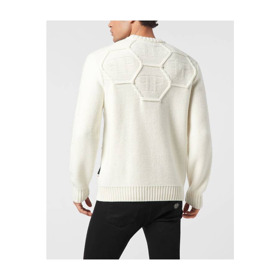 Innovation and creativity are the roots of the style of Plein. Discover the features of this lambswool knit crewneck pullover.