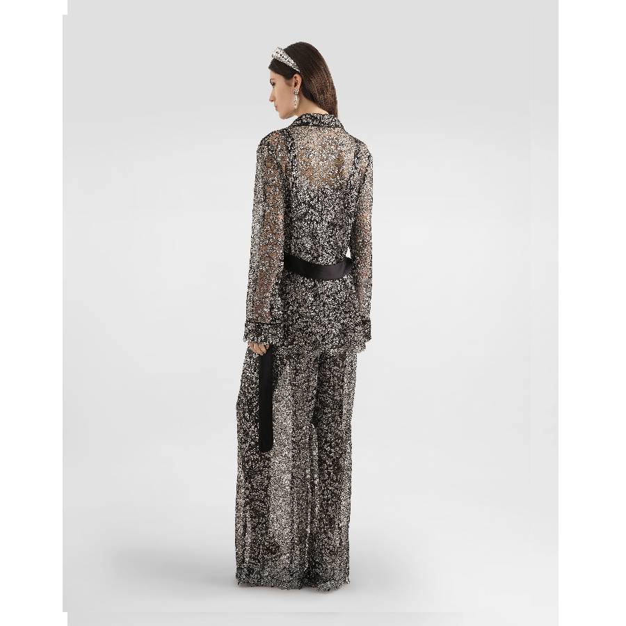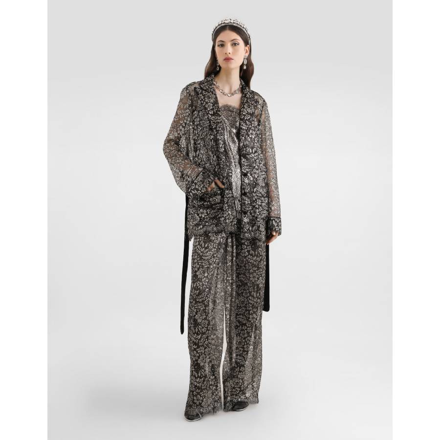 These loose-fitting lamé lace trousers are the epitome of sophisticated, modern elegance. Perfect for those who want a distinctive look, they adapt to different occasions with a refined touch.