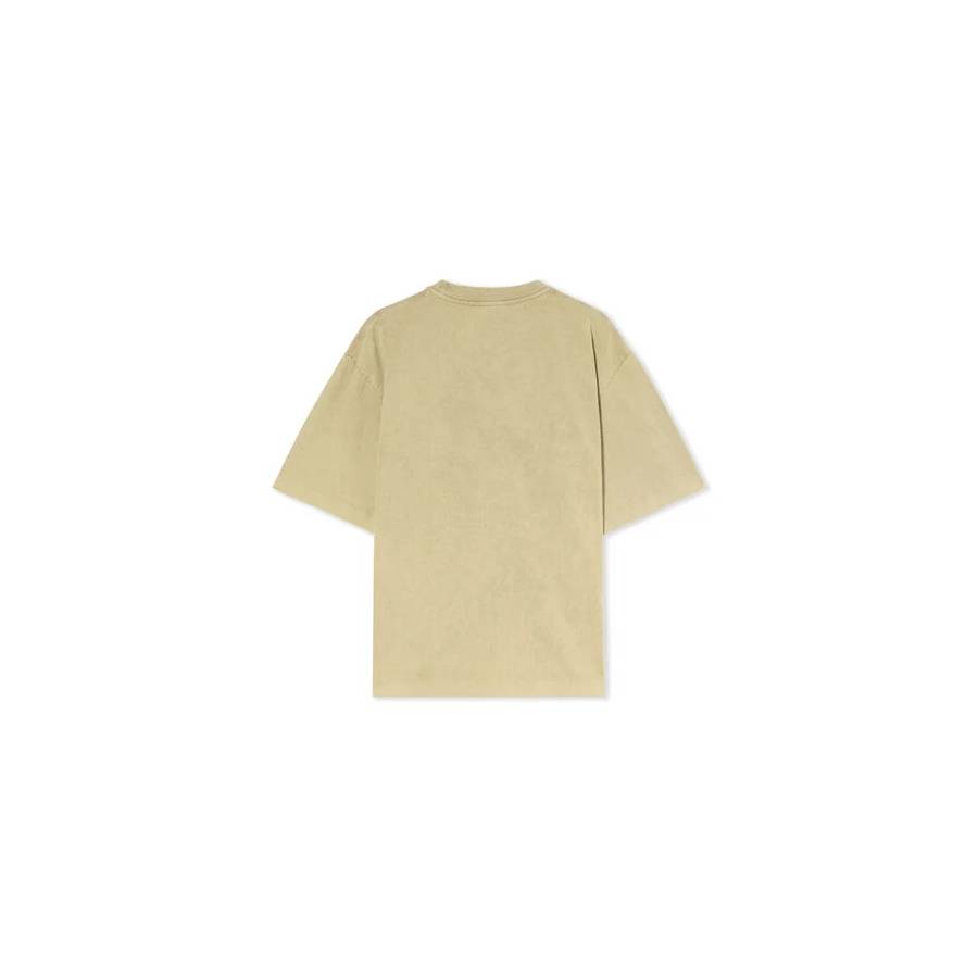 - Boxy silhouette with short sleeves