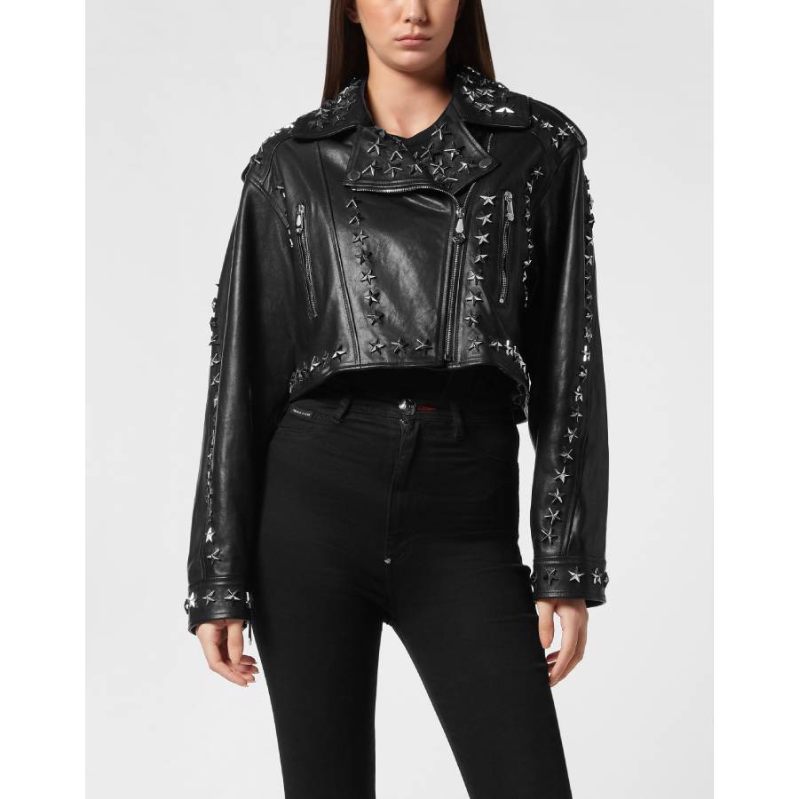 Leather Biker Jacket Star Studs
