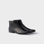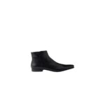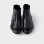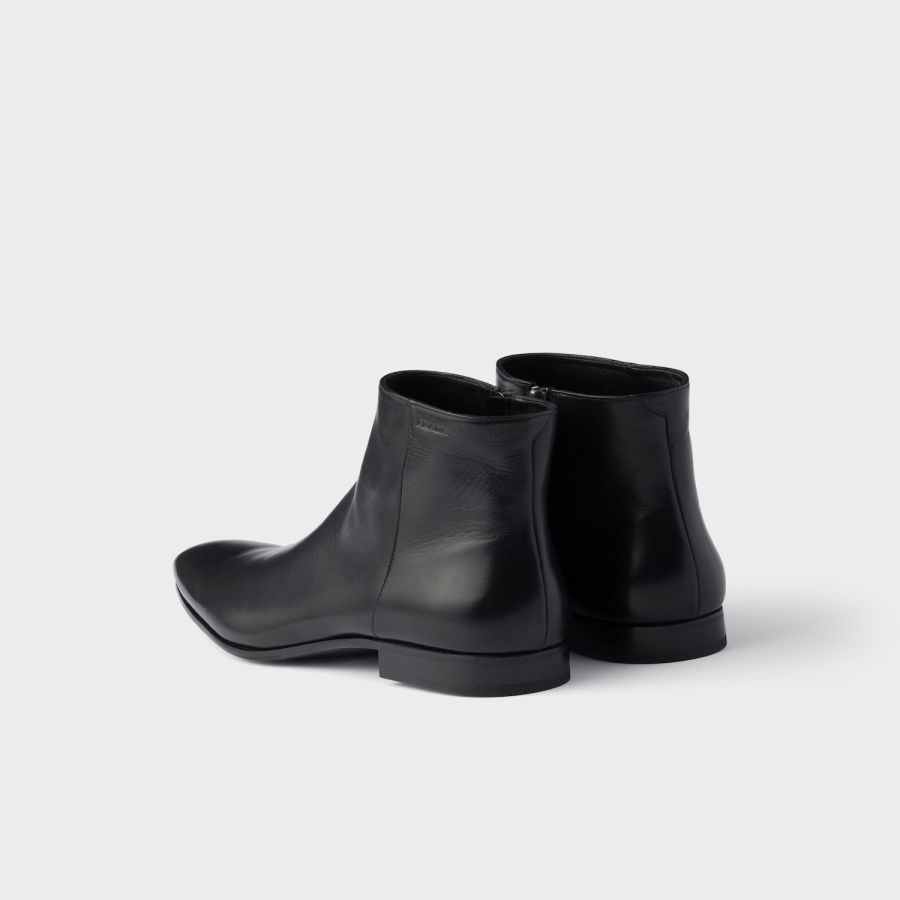 These leather booties with side zipper have a rigorous, distinctive design. Elegant lines are combined with the leather sole and rubber half-sole for versatile, contemporary allure.