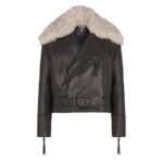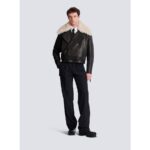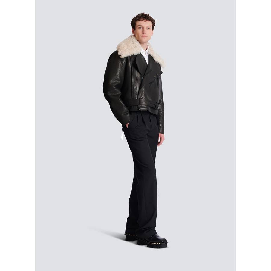Leather jacket with shearling collar