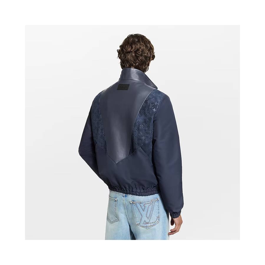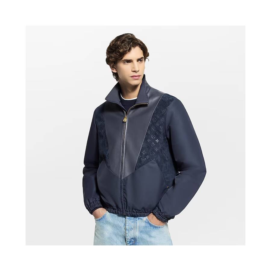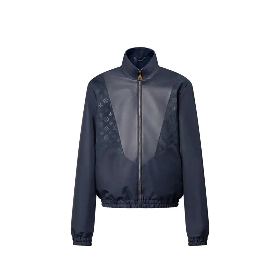 This dark navy tracksuit top offers a luxurious twist on a casual silhouette, with sporty inserts in supple Napa leather and Monogram-debossed suede accenting the technical nylon body. With its sophisticated play of textures, this timeless and contemporary mid-season layer is easy to style with everyday looks.