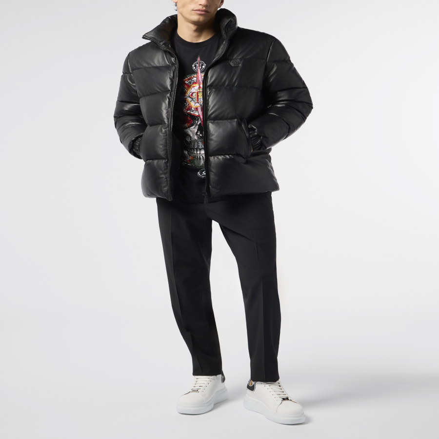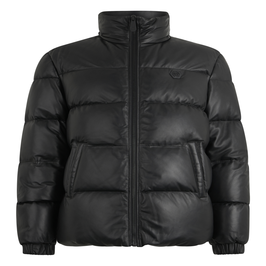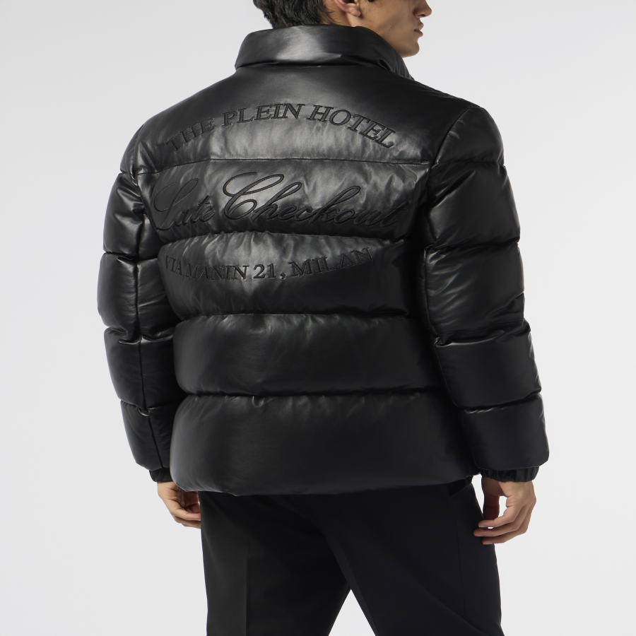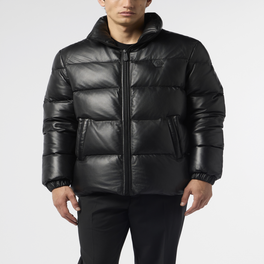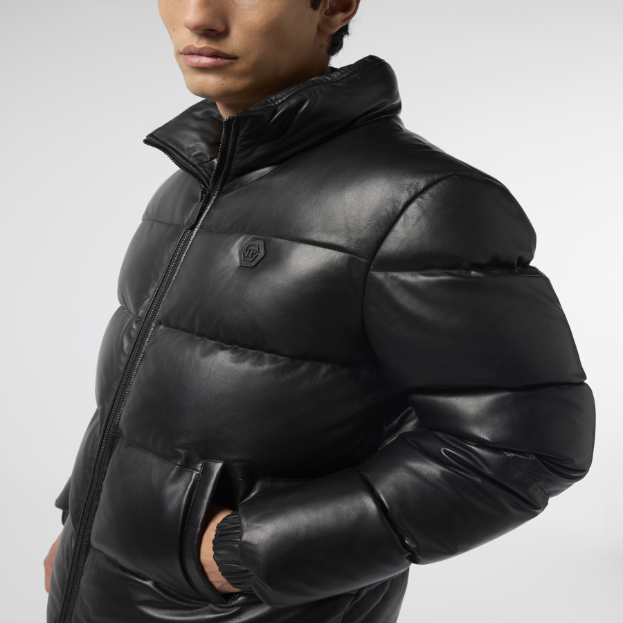 Home Men Clothes Jackets & Sweatshirts Leather Puffer Jacket Late Checkout