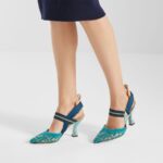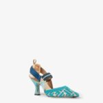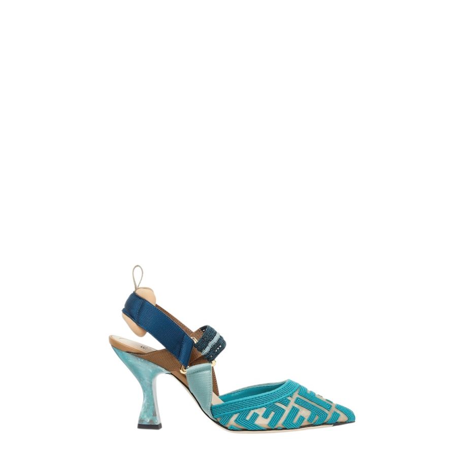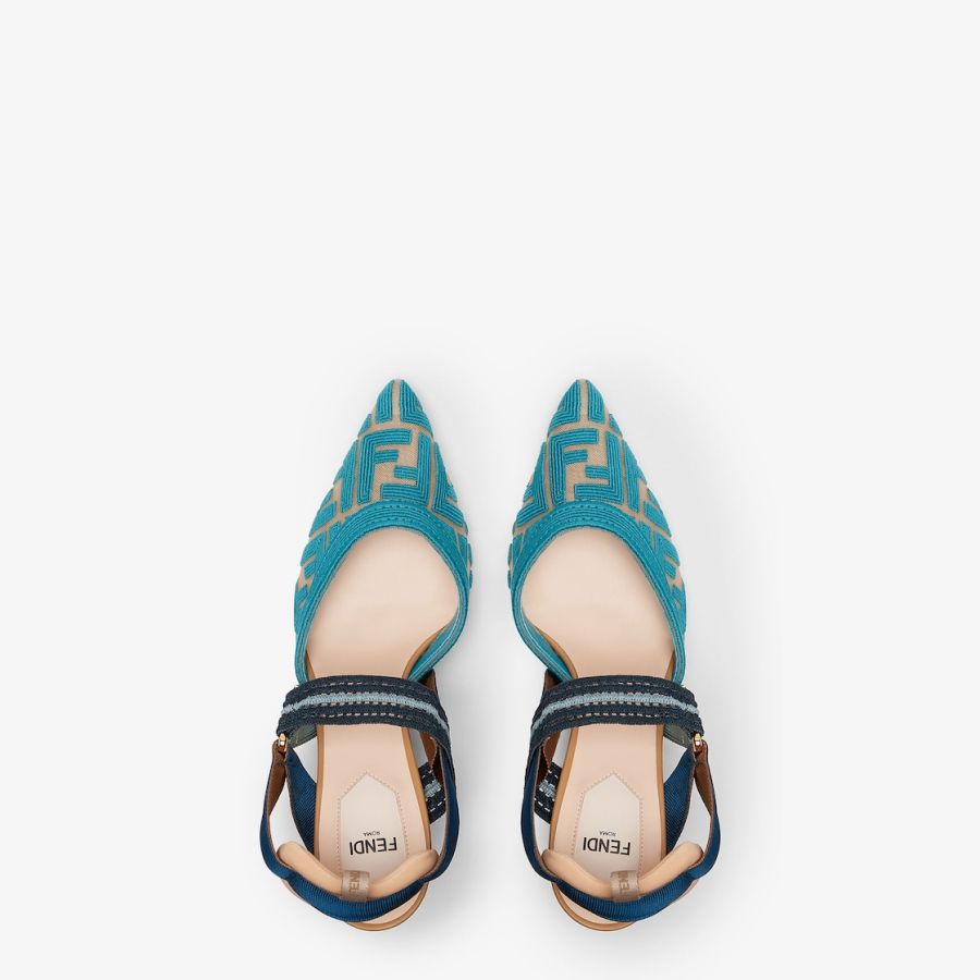 Home Women FootWear Light blue FF fabric high-heeled slingbacks