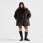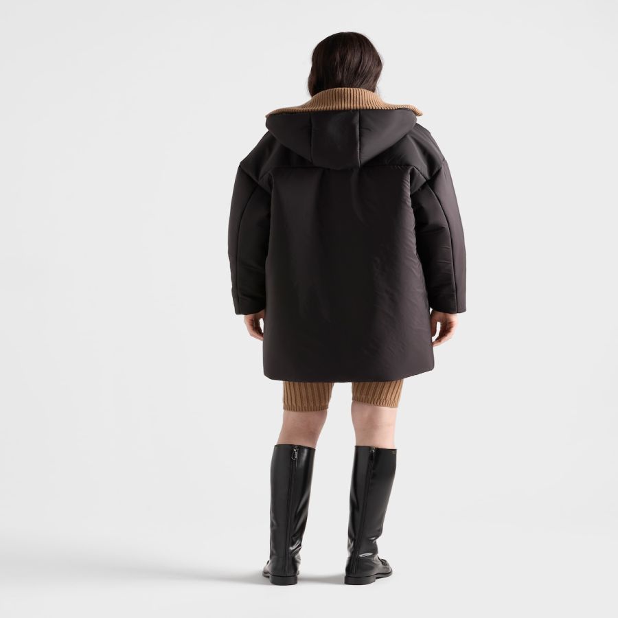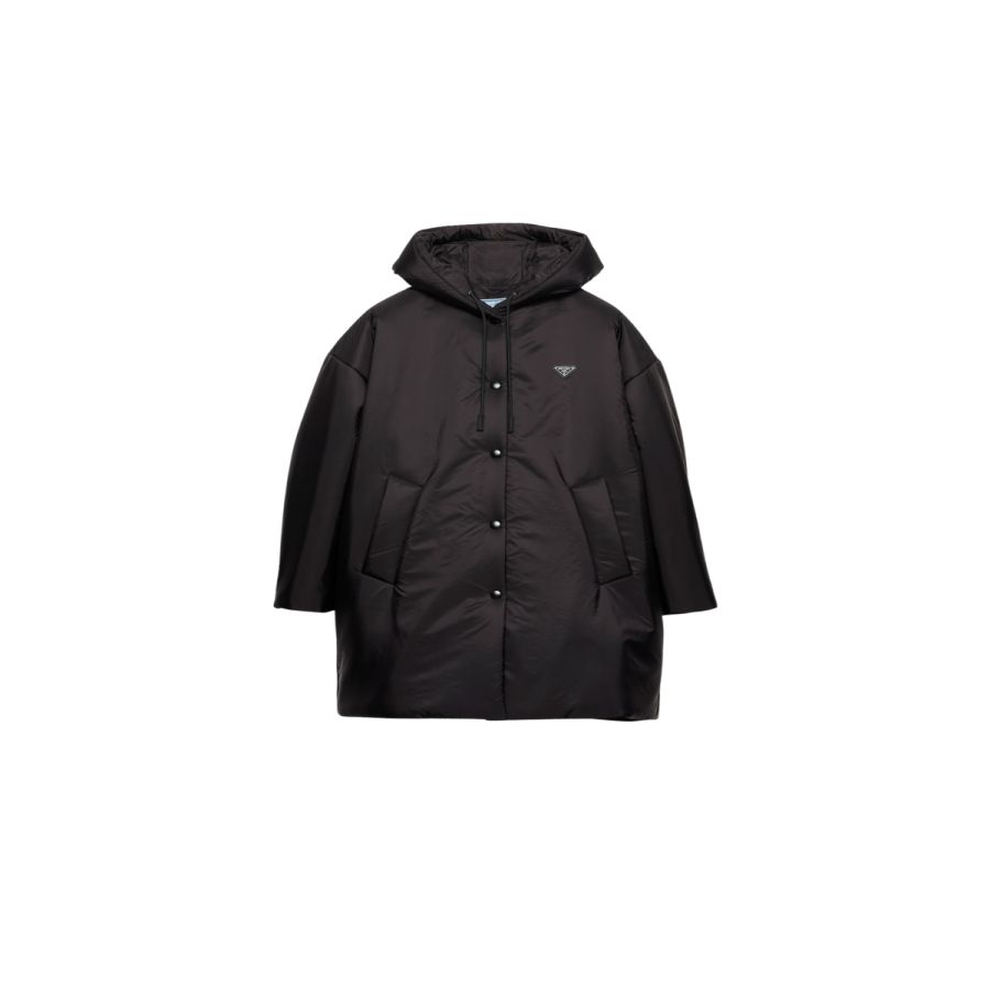 The functionality and technical qualities of Re-Nylon are emphasized by this raincoat with a soft and lightly padded design. The simple silhouette defines this versatile, contemporary garment decorated with the enameled metal triangle logo.