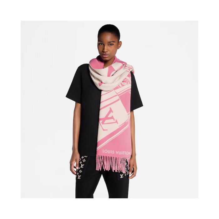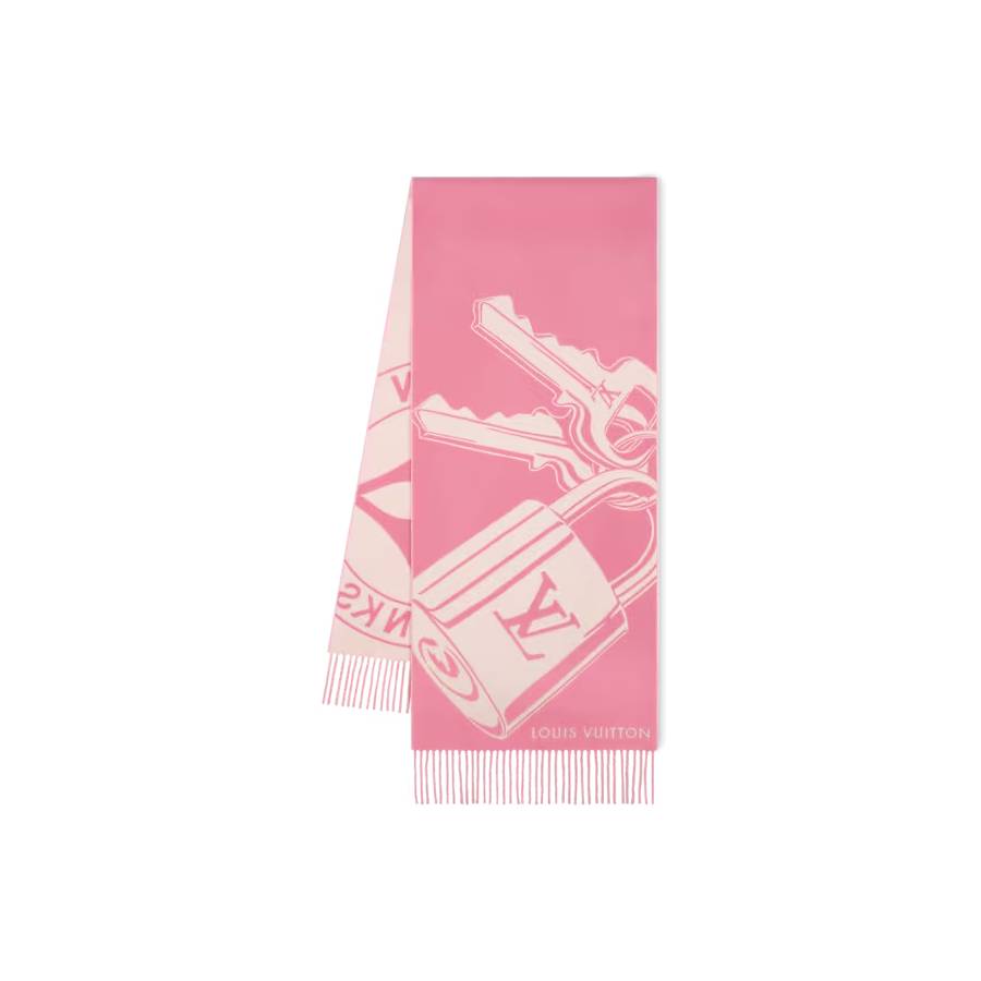 The intriguing design of the Lock And Keys scarf is a creative evocation of the House’s luggage-making heritage. Crafted in a plush double-layer weave of wool and cashmere, it features an LV padlock with two keys on one side and a “Louis Vuitton Trunks” medallion on the other. A warm and stylish winter scarf with a striking signature look.