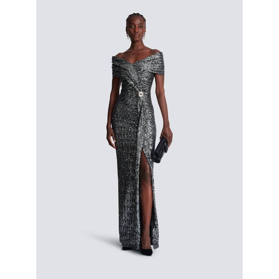 Long draped sequin dress