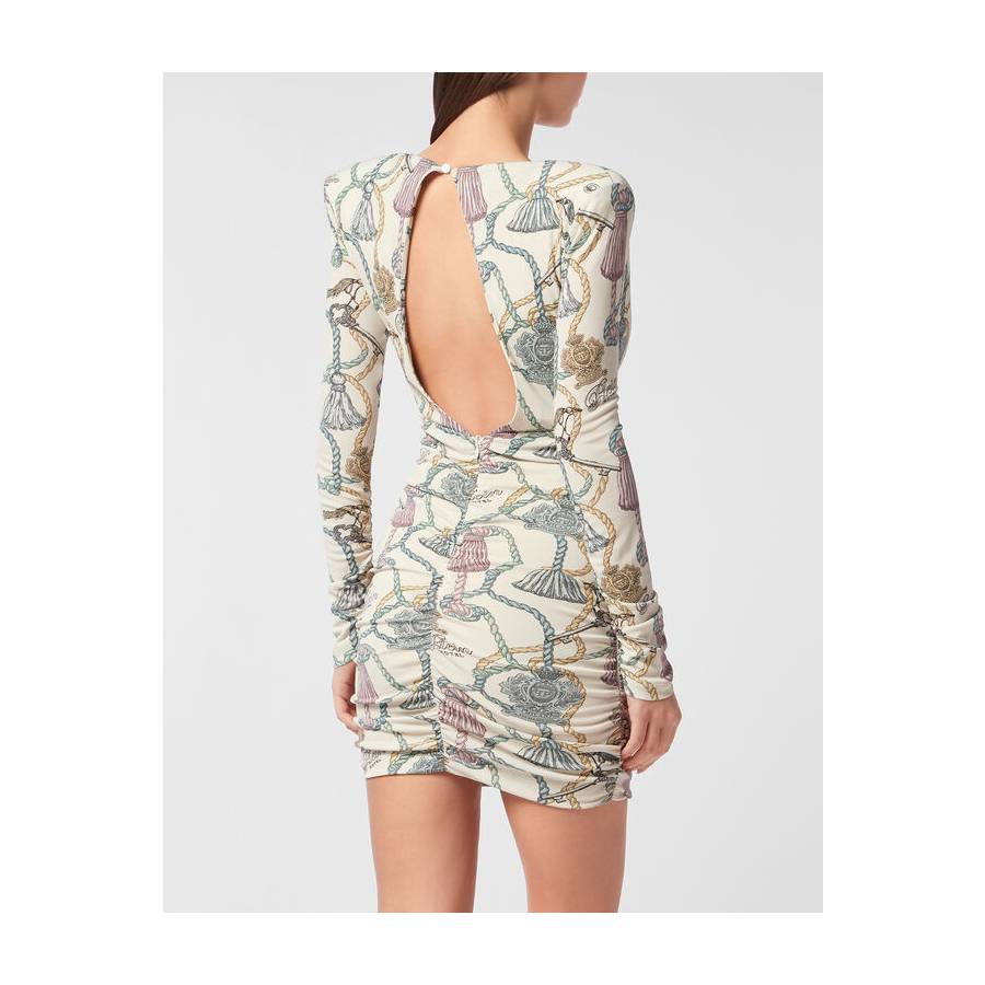 If you’re into the glam look, we suggest this draped long sleeves dress. Discover the care for details.