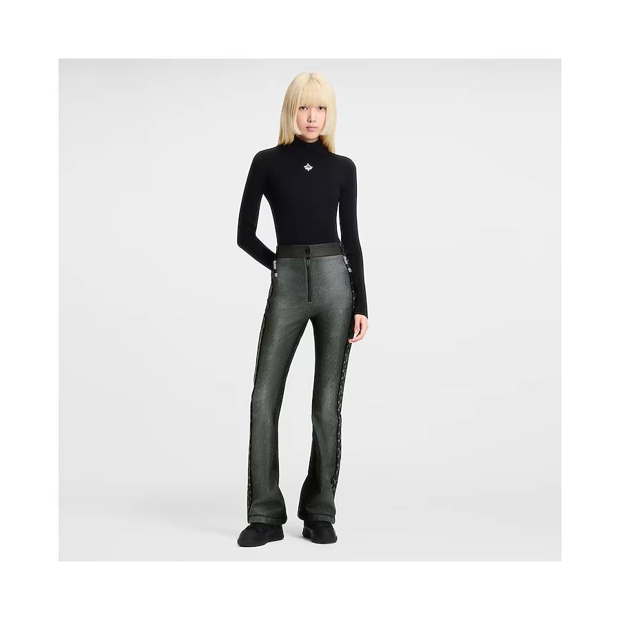 This sleek long-sleeved top forms the base layer of a functional winter-sports look, crafted from a technical wool blend in a fine, flexible ribbed-knit finish for elevated warmth. It is crafted in a flattering fitted silhouette with a chic mock neck. A seasonal Monogram Flower patch adds a graphic signature accent to the chest.