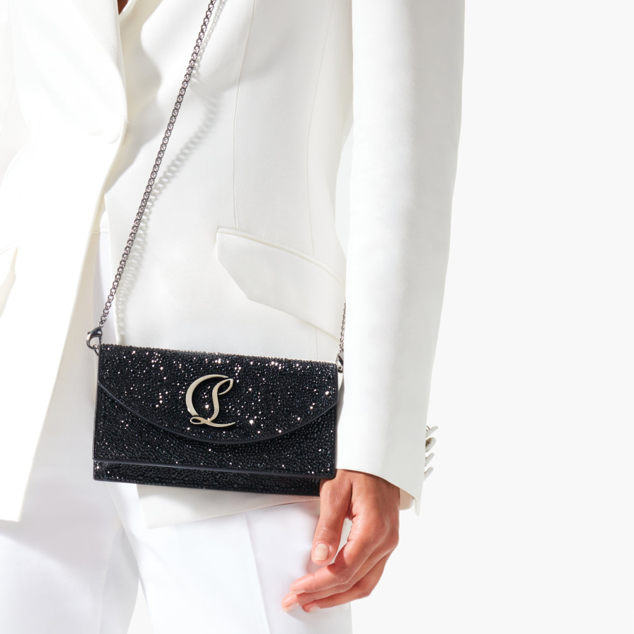The elegant Loubi54 clutch enchants with characteristic Maison Christian Louboutin sophistication. Crafted in black leather and adorned with strass, it has a magnetic clasp with a tonal CL monogram.