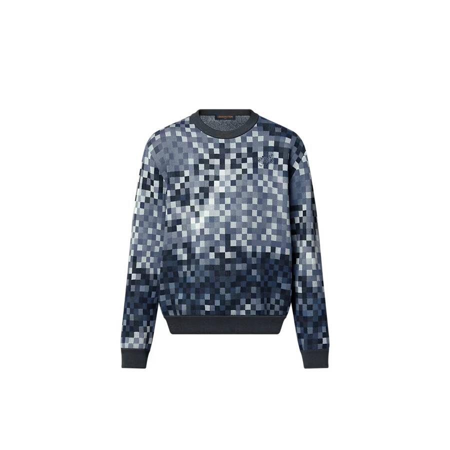 This intricately crafted pullover features the iconic Damoflage motif in a complex cotton jacquard that reinterprets the iconic Damier in blue tones. This piece is further embellished with the LV Vers slogan, introduced by Pharrell Williams, which is picked out with studs and embroidery across the back, bringing a distinguished touch to casual looks.