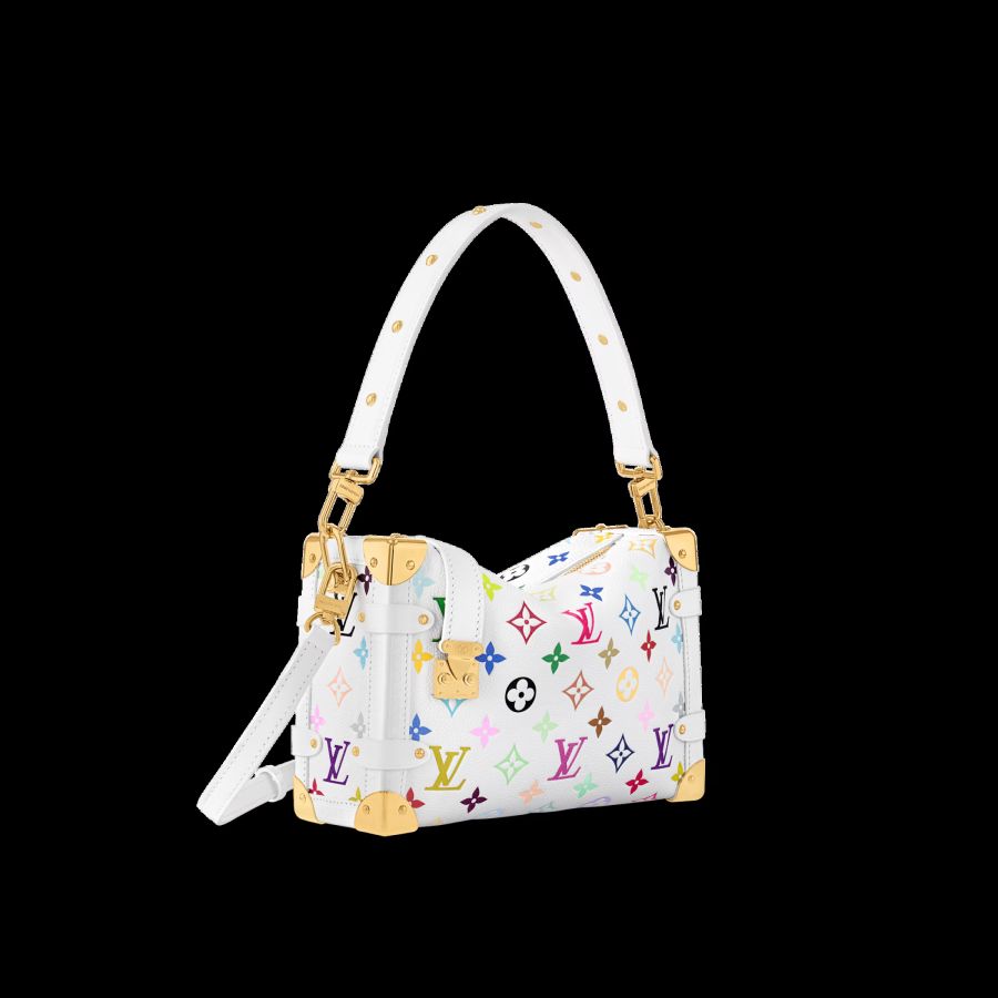 The iconic Side Trunk MM bag makes a spirited everyday statement in a playful version of the Monogram motif from the re-edition of the Louis Vuitton x Murakami Collection. Crafted from supple cowhide, the rectangular silhouette pays homage to the House’s archival luggage complete with golden reinforced corners and an emblematic S-lock closure. The removable handle embellished with studs and strap offer versatile carry options, while the inside is large enough to stow daily essentials.