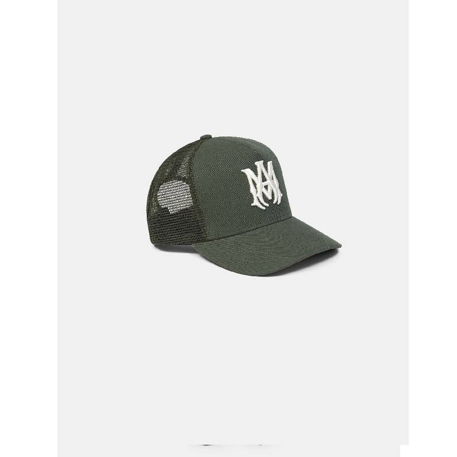 House signature graphics illustrate accessories in seasonal colors for Pre-Spring 2026. The MA Trucker Hat is embroidered with the MA icon and finished with a curved brim, embroidered eyelets, and double snapback fastening.