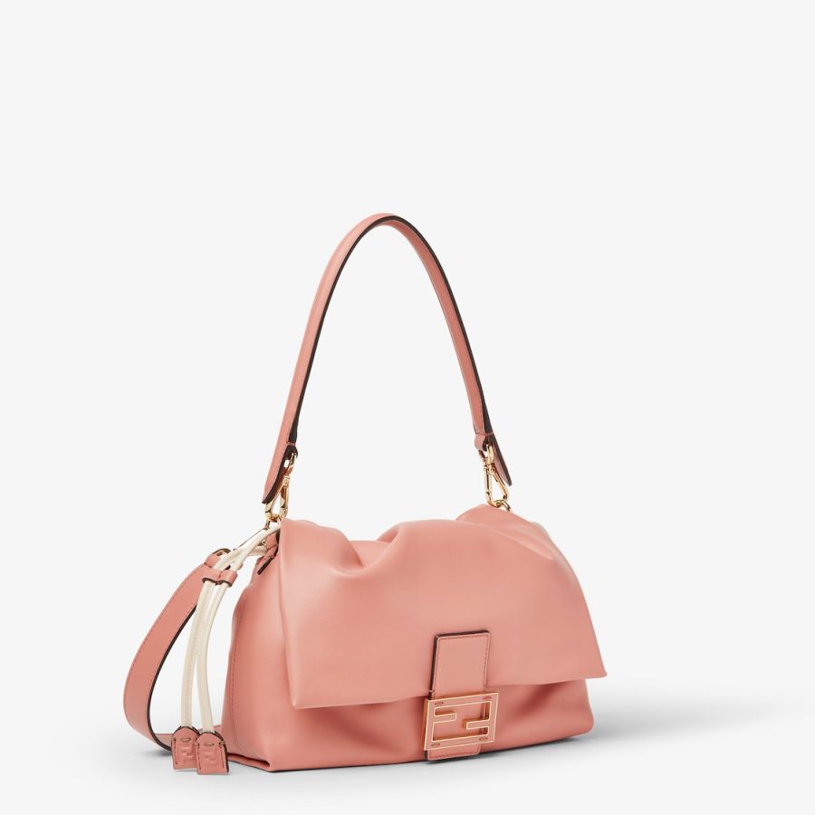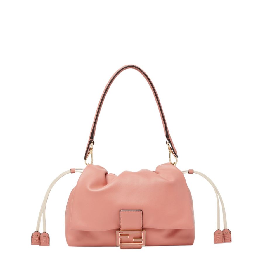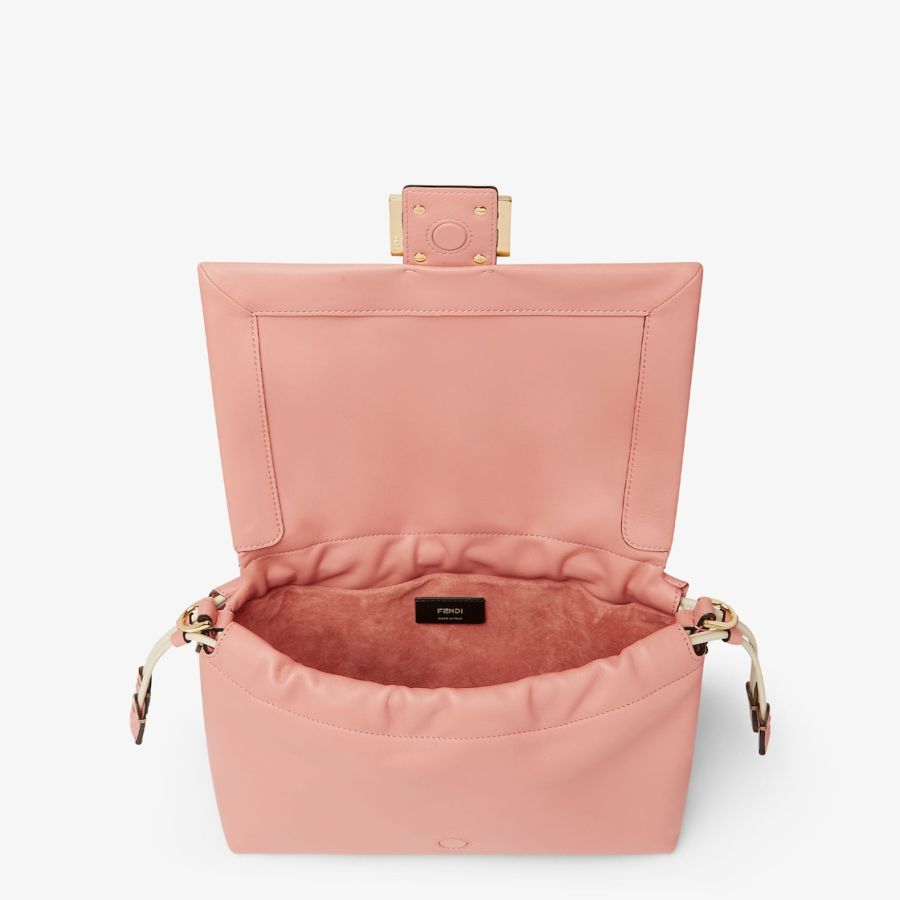 Made of soft, pink nappa leather embellished with an oversized metal FF clasp with tone on tone leather insert.