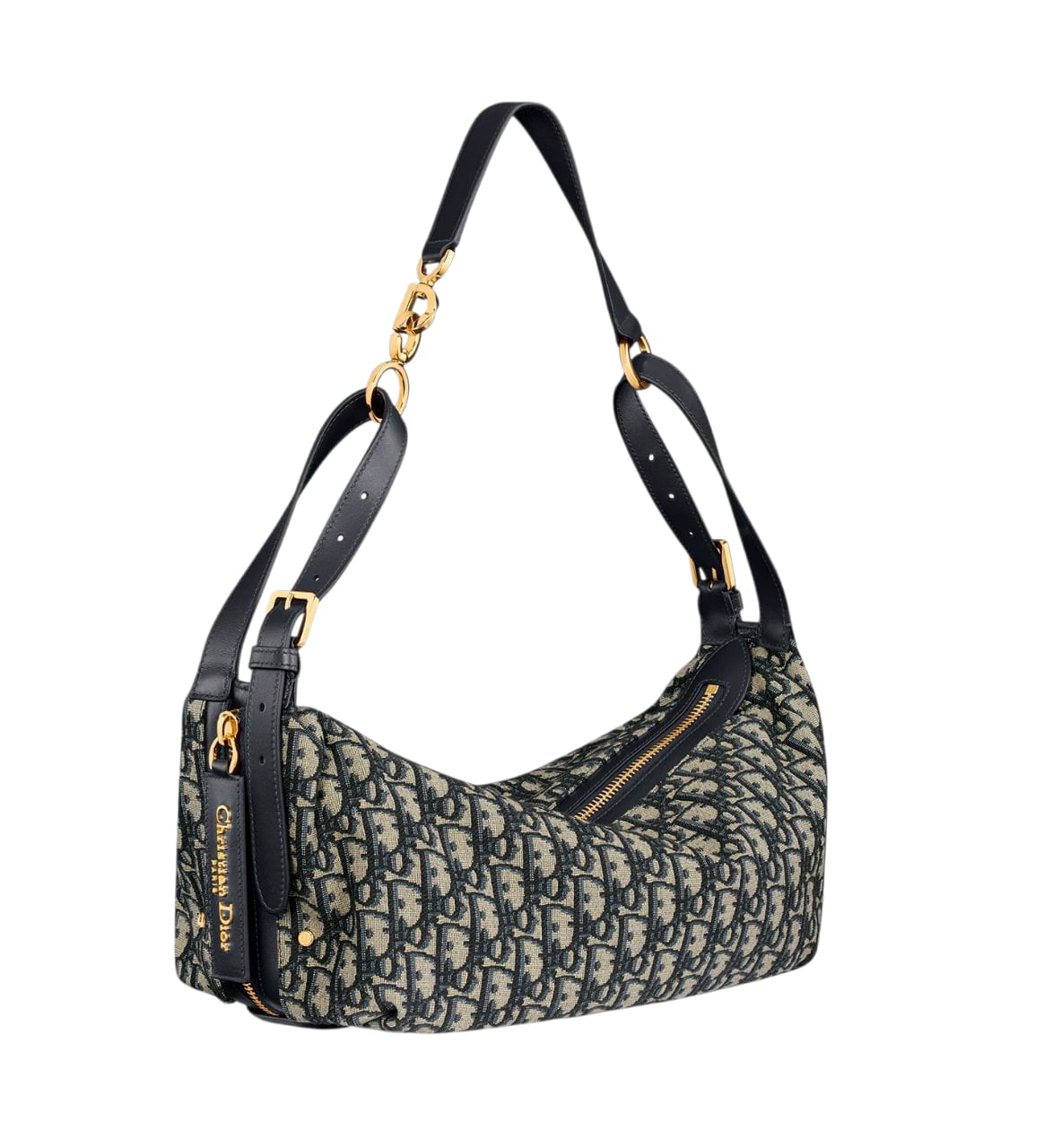 Decorative side pockets with leather pulls with antique gold-finish metal Christian Dior Paris signature